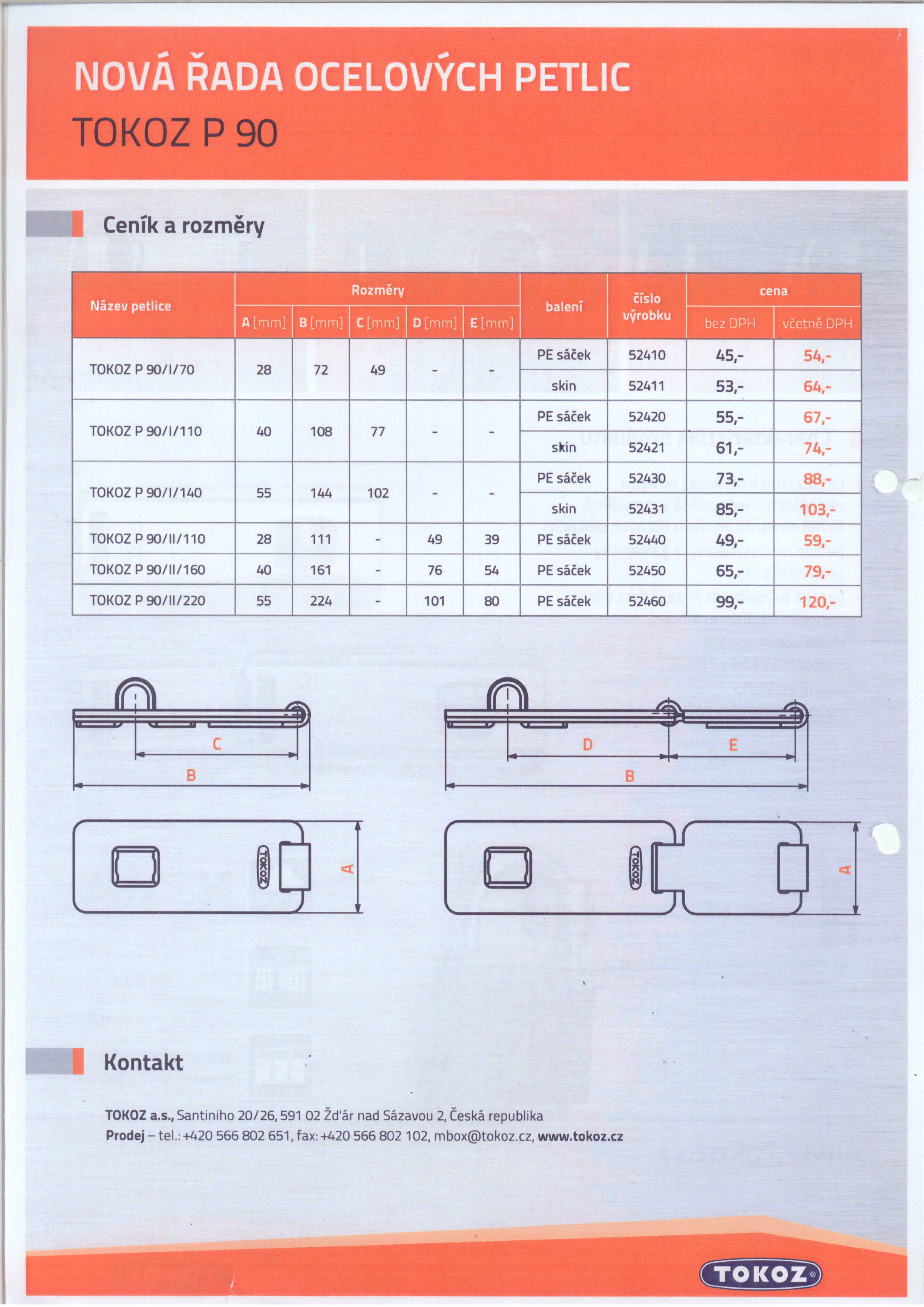 Informace o produktu "Petlice TOKOZ P 90/I/110 jednodílná"