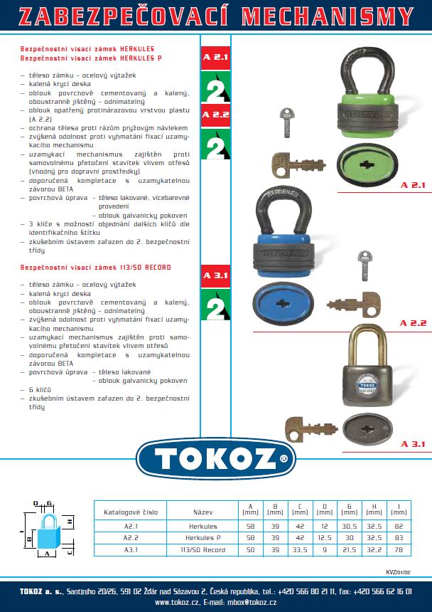- náhradní klíče dodává firma TOKOZ nebo její smluvní partneři